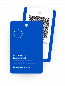Die neue Immunkarte ist das physisch-robuste Äquivalent des europaweit akzeptierten Impfzertifikats des Bundesgesundheitsministeriums.